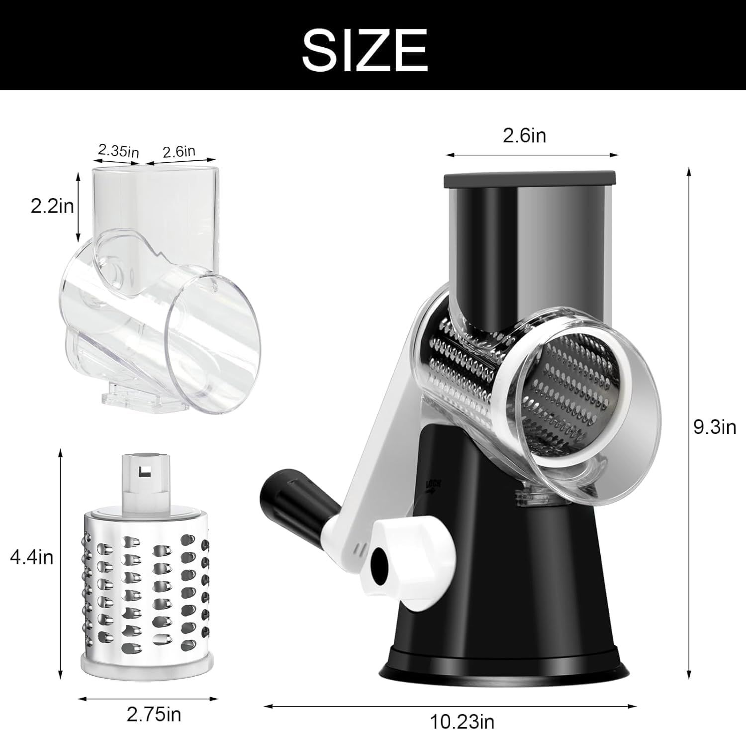 Vekzio Rotary Cheese Grater Hand Crank Cheese Shredder for Fresh Cheese, Vegetable, Nuts,Non-slip Suction Base, Free Cleaning Brush Three Blades, Black